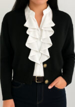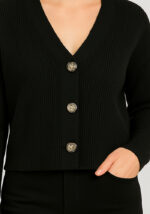 Η πλεκτή ζακέτα Grunge σε μαύρο είναι η απόλυτη επιλογή για κομψές, cozy και ευέλικτες εμφανίσεις. Με ανάγλυφη πλέξη, V λαιμόκοψη και κουμπιά σε μαρμάρινη όψη, προσφέρει διαχρονικό χαρακτήρα και μοντέρνα φινέτσα. Φοριέται εύκολα είτε κουμπωμένη ως top είτε ανοιχτή πάνω από πουκάμισο ή φόρεμα.
