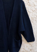 Η πλεκτή ζακέτα Franca σε μαύρο είναι το ιδανικό κομμάτι για cozy αλλά και κομψές εμφανίσεις. Με χαλαρή γραμμή, μαλακή υφή και πρακτικές τσέπες, συνδυάζεται εύκολα με jeans, φορέματα ή office looks. Ένα διαχρονικό πλεκτό που προσθέτει ζεστασιά και στυλ στην καθημερινότητα σας.