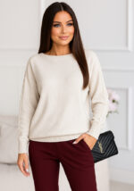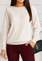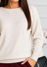 Το πλεκτό Loose σε εκρού απόχρωση αποπνέει κομψότητα και διακριτική θηλυκότητα. Με χαλαρή γραμμή και κομψή πλέξη στα μανίκια, προσφέρει στυλ και άνεση από το πρωί έως το βράδυ.Η απαλή υφή του και το διακριτικό του φινίρισμα το καθιστούν ιδανικό για business εμφανίσεις, city strolls ή after-work εξόδους.
