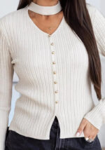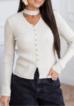 Αυτό το εκρού πλεκτό μπλουζάκι με κουμπιά Bottoni αποτελεί την ιδανική επιλογή για κομψές, καθημερινές εμφανίσεις. Το ανάγλυφο πλέξιμο χαρίζει ζεστασιά και στυλ, ενώ η εφαρμογή του συνδυάζει άνεση με θηλυκή γραμμή. Μπορεί να φορεθεί πάνω από ένα basic τοπ για layered looks που ξεχωρίζουν.