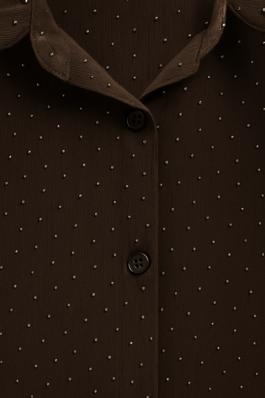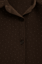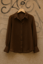 Το πουκάμισο semisheer μεταλλάκια Shine είναι το απόλυτο elegant κομμάτι που συνδυάζει διακριτική λάμψη με αέρινη θηλυκότητα. Κατασκευασμένο από ελαφρύ, ημιδιάφανο ύφασμα, διακοσμημένο με μικροσκοπικά μεταλλικά στοιχεία που αντανακλούν το φως, προσφέρει refined αποτέλεσμα με διακριτική γοητεία. Η χαλαρή γραμμή του και τα μακριά μανίκια με φαρδιά μανσέτα προσδίδουν sophisticated κίνηση, ενώ το κλασικό γιακά και τα κουμπιά στο μπροστινό μέρος το καθιστούν ιδανικό για day-to-night εμφανίσεις.
