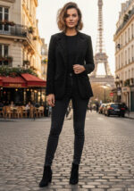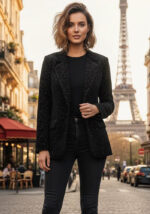 Το βελούδο σακάκι Magnificent σε μαύρο αποτελεί μία αναβαθμισμένη πρόταση outerwear για γυναίκες που επενδύουν σε κομψότητα με σύγχρονο χαρακτήρα. Η βελούδινη foil υφή προσφέρει βάθος και premium αισθητική, ενώ η διακριτική γυαλάδα απογειώνει το look χωρίς υπερβολές. Διαθέτει κλασικό γιακά, μονό κουμπί και δύο λειτουργικές τσέπες, διαμορφώνοντας μια καθαρή γραμμή ιδανική για office wear, smart casual εμφανίσεις και βραδινές εξόδους. Συνδυάζεται με το ασορτί παντελόνι Serata . Μπορεί επίσης να φορεθεί με denim, υφασμάτινο παντελόνι ή φόρεμα — ένα statement κομμάτι που ενισχύει το προσωπικό branding κάθε γυναίκας.