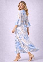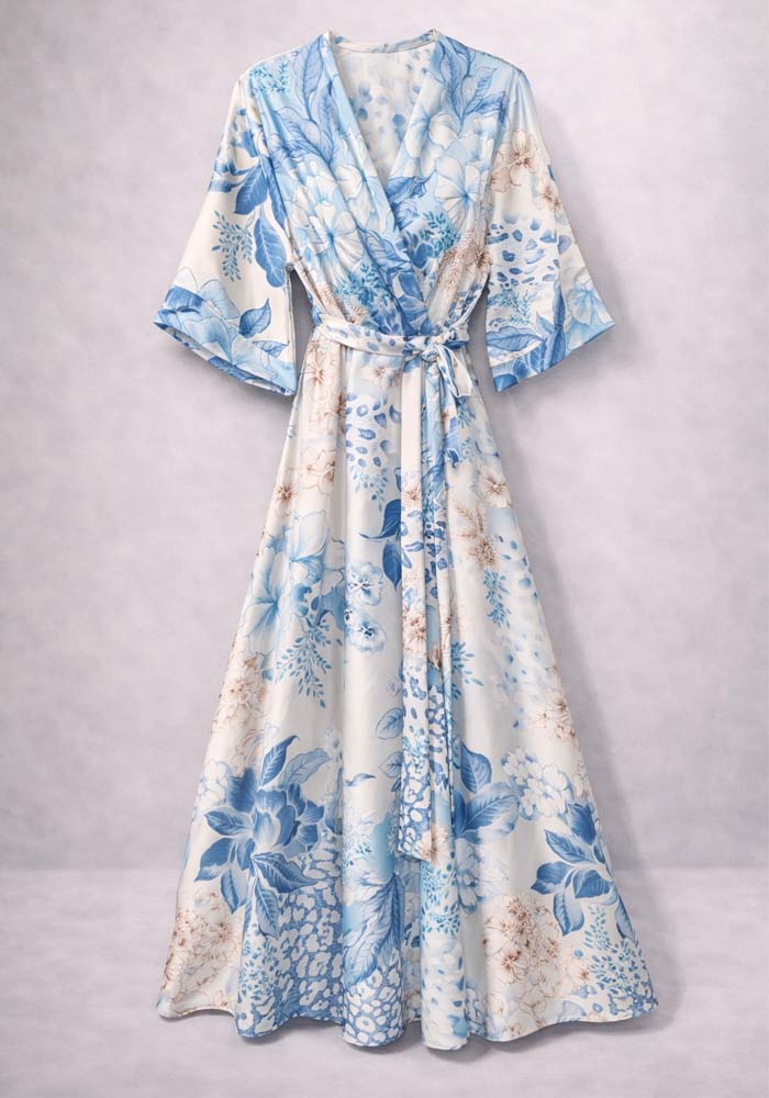 Κομψό σατέν maxi φόρεμα Ariele με floral print σε αποχρώσεις γαλάζιου και ιβουάρ, ιδανικό για occasion εμφανίσεις αλλά και refined καθημερινό styling. Το σατέν ύφασμα προσφέρει διακριτική γυαλάδα και ρευστή εφαρμογή, αναδεικνύοντας τη θηλυκή σιλουέτα. Η κρουαζέ γραμμή στο μπούστο δημιουργεί κομψό V ντεκολτέ, ενώ η αποσπώμενη ζώνη από το ίδιο ύφασμα τονίζει τη μέση και επιτρέπει προσαρμοσμένη εφαρμογή. Τα μανίκια 3/4 προσδίδουν ισορροπία και κομψότητα, ενώ η αέρινη γραμμή της φούστας εξασφαλίζει κίνηση και άνεση. Ένα elegant σατέν φόρεμα που συνδυάζει ρομαντική αισθητική με σύγχρονη κομψότητα.