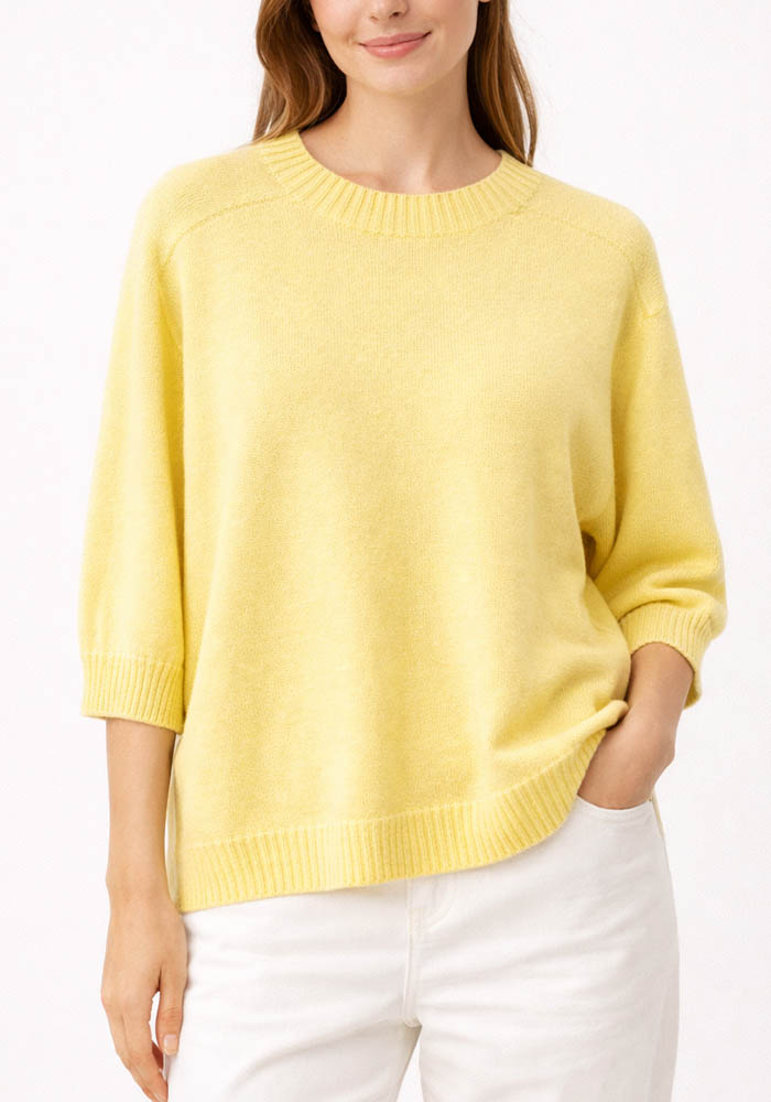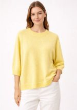 - Κίτρινο πλεκτό με 3/4 μανίκι