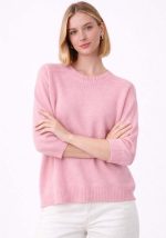 • Ροζ πλεκτό με 3/4 μανίκι