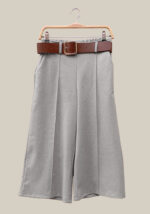 Η zip κιλότ σε απόχρωση γκρι ανοικτό αποτελεί μια ευέλικτη επιλογή για καθημερινά και smart-casual looks. Το ελαστικό ύφασμα φανέλα προσφέρει άψογη εφαρμογή, ενώ οι κάθετες ραφές νερβίρ, δημιουργούν clean γραμμή που επιμηκύνει οπτικά το σώμα. Η ζώνη στη μέση ενισχύει τη σιλουέτα και επιτρέπει άνετη προσαρμογή, ενώ το μήκος της κιλότ εξασφαλίζει μοντέρνα, αρχιτεκτονική αισθητική. Ένα κομμάτι-κλειδί για επαγγελματικά σύνολα και καθημερινό street style!