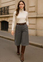 Η zip κιλότ σε απόχρωση γκρι σκούρο αποτελεί μια ευέλικτη επιλογή για καθημερινά και smart-casual looks. Το ελαστικό ύφασμα φανέλα προσφέρει άψογη εφαρμογή, ενώ οι κάθετες ραφές νερβίρ, δημιουργούν clean γραμμή που επιμηκύνει οπτικά το σώμα. Η ζώνη στη μέση ενισχύει τη σιλουέτα και επιτρέπει άνετη προσαρμογή, ενώ το μήκος της κιλότ εξασφαλίζει μοντέρνα, αρχιτεκτονική αισθητική. Ένα κομμάτι-κλειδί για επαγγελματικά σύνολα και καθημερινό street style!