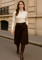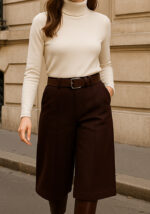 Η zip κιλότ σε καφέ απόχρωση αποτελεί μια ευέλικτη επιλογή για καθημερινά και smart-casual looks. Το ελαστικό ύφασμα φανέλα προσφέρει άψογη εφαρμογή, ενώ οι κάθετες ραφές νερβίρ, δημιουργούν clean γραμμή που επιμηκύνει οπτικά το σώμα. Η ζώνη στη μέση ενισχύει τη σιλουέτα και επιτρέπει άνετη προσαρμογή, ενώ το μήκος της κιλότ εξασφαλίζει μοντέρνα, αρχιτεκτονική αισθητική. Ένα κομμάτι-κλειδί για επαγγελματικά σύνολα και καθημερινό street style!
