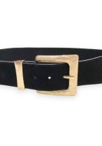Κομψή ελαστική ζώνη Amy σε μαύρο χρώμα με suede υφή, σχεδιασμένη για να προσδίδει δομή και πολυτέλεια σε κάθε σύνολο. Η εντυπωσιακή χρυσή μεταλλική αγκράφα με ανάγλυφο φινίρισμα λειτουργεί ως κεντρικό statement στοιχείο, προσφέροντας refined αισθητική και ισορροπία μεταξύ minimal και elegant γραμμής. Η ελαστική πίσω πλευρά εξασφαλίζει άνετη εφαρμογή και σταθερό κράτημα στη μέση, καθιστώντας τη ζώνη ιδανική για φορέματα, σακάκια, πουκάμισα ή tailored παντελόνια. Αποτελεί ευέλικτο styling εργαλείο που αναβαθμίζει άμεσα τόσο καθημερινά όσο και πιο formal looks.