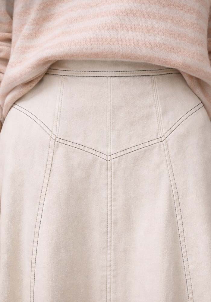 Μίντι φούστα Sports σε εκρού από ανθεκτικό βαμβακερό τζην ύφασμα με δομημένη Α-line γραμμή που αναδεικνύει τη σιλουέτα και προσφέρει άνετη εφαρμογή. Διαθέτει μεταλλικό φερμουάρ πίσω με κρίκο puller, που προσθέτει μοντέρνο χαρακτήρα και πρακτικότητα στο styling. Οι κάθετες ραφές δημιουργούν οπτικό εφέ επιμήκυνσης, ενώ το σταθερό ύφασμα εξασφαλίζει άψογη φόρμα καθ’ όλη τη διάρκεια της ημέρας. Ιδανική επιλογή για καθημερινά city looks, office outfits αλλά και smart casual εμφανίσεις. Συνδυάζεται εύκολα με πλεκτά, πουκάμισα και cropped tops.