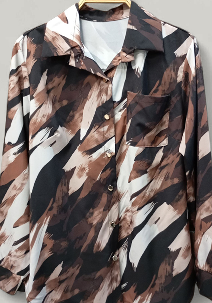 Αναδείξτε το στυλ σας με αυτό το γυναικείο πουκάμισο σε ιδιαίτερο abstract print σε αποχρώσεις καφέ, μαύρου και εκρού. Ο μοντέρνος σχεδιασμός του το καθιστά ιδανικό για δυναμικές επαγγελματικές εμφανίσεις αλλά και για ιδιαίτερες βραδινές εξόδους. Το άνετο κόψιμο και το κλασικό γιακάς-κουμπιά συνδυάζουν κομψότητα με πρακτικότητα. Ένα statement κομμάτι που ξεχωρίζει σε κάθε γκαρνταρόμπα.